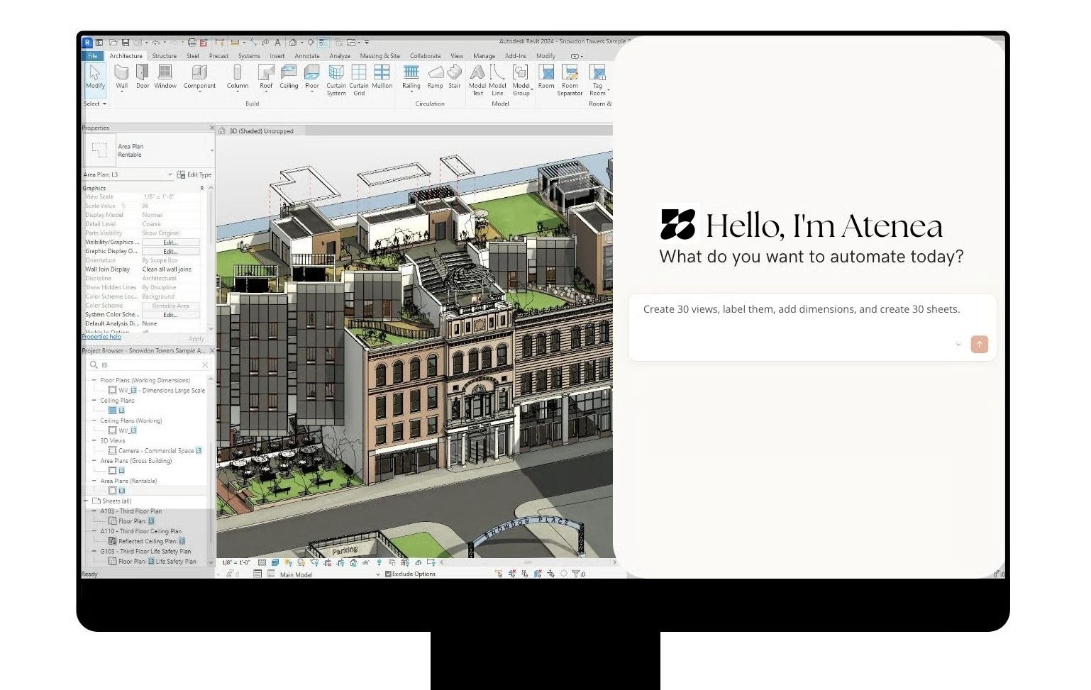 Atenea is a chat and AI agent for Revit. Automate workflows in Revit, just by typing them.